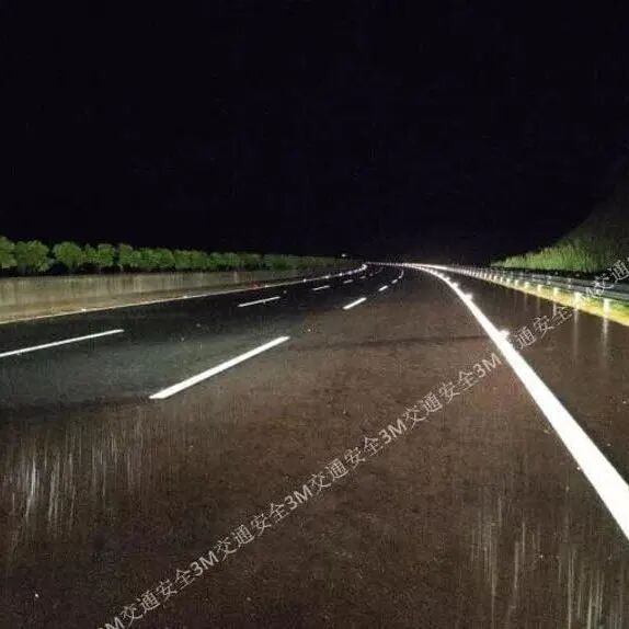 而3M全天候高亮雨夜反光标线可以很好地解决这个问题:它基于3M独特的逆反射技术,使用了3M全天候高亮雨夜珠,不仅可以在水膜覆盖的情况下将大部分光线反射到驾驶员眼中,而且可以解决普通标线在干燥夜晚亮度不足的问题,实现全天候的反光效果。也就是说,无论晴天或雨天,还是潮湿的降雨夜晚,3M全天候高亮雨夜反光标线都能为驾乘人员提供高亮反光效果,时刻守护驾驶员行车安全。